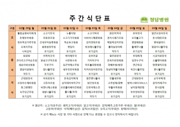 02/29 ~ 03/06 주간식단표