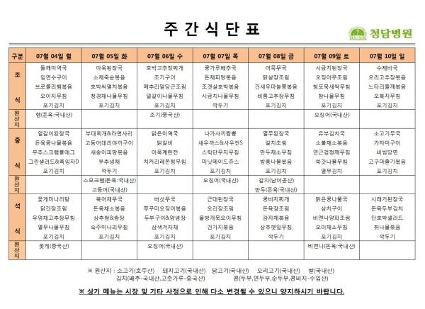 07/04 ~ 07/10 주간식단표