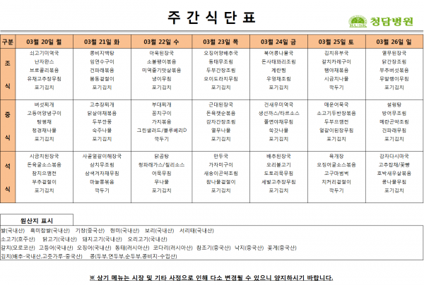3/20~3/26 주간식단표