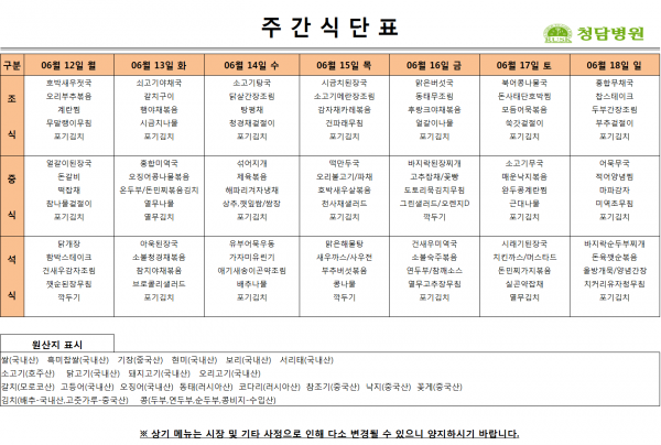 6/12~6/18 주간식단표